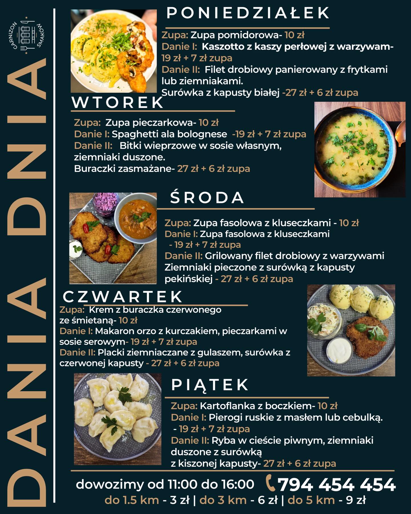 bistro minimalne zamówienie 45 złdo 1.5 km – 3 zł | do 3 km – 6 zł | do 5 km – 9 zł+ opłaty recyklingowe 794 454 454 godziny otwarcia poniedziałek – piątek | 11:00 – 16:00 MENU 02.02 .- 06.02.